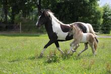 2003 / Deutschland Rappeschecke (Splash-Gen) Stockmaß: 140 Eigenschaft: 4-Gänger |
